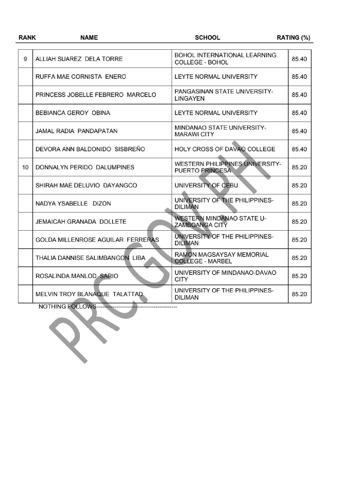 PASADOBA.COM shares official Board Exam Results released by the PRC, ensuring all information is up-to-date based on the Professional Regulation Commission (PRC)'s official releases. We are the best online resource for board passers and top notchers.